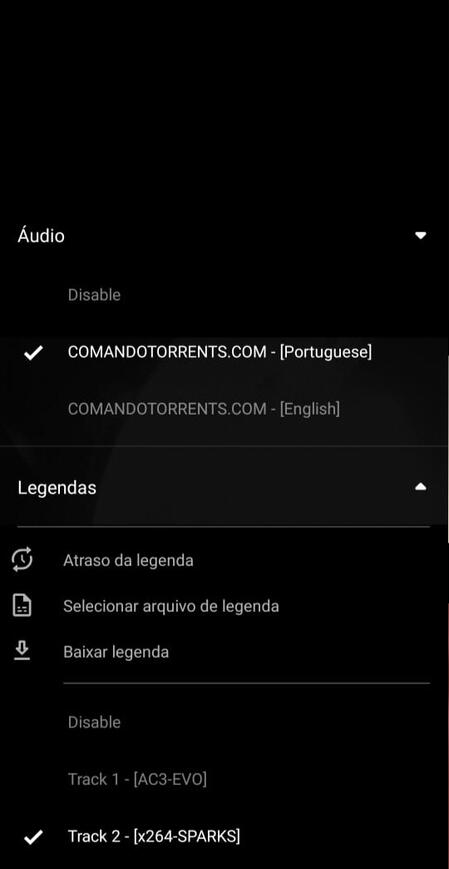 12# Além disso, na opção você consegue colocar a legenda em seu arquivo. Caso a legenda não apareça você vá em ''Selecionar arquivo de legenda'' e procure em seus downloads. Ou você pode baixar diretamente do aplicativo na opção ''Baixar legenda''